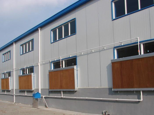 ZR濕簾降溫系統(tǒng)的降溫過程是在基核心-ZR紙墊內(nèi)完成的。在波紋的纖維紙表面有層薄薄的水膜,當室外干熱空氣被風機抽吸穿過紙墊時,水膜上的水會吸收空氣中的熱量進而蒸發(fā)在水蒸氣,這樣經(jīng)過處理后的涼爽濕潤的空氣就進入室內(nèi)了。這自然的過程猶如風吹過水面一樣。